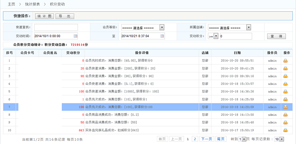五通一卡通云會(huì)員管理系統(tǒng)積分變動(dòng)統(tǒng)計(jì)