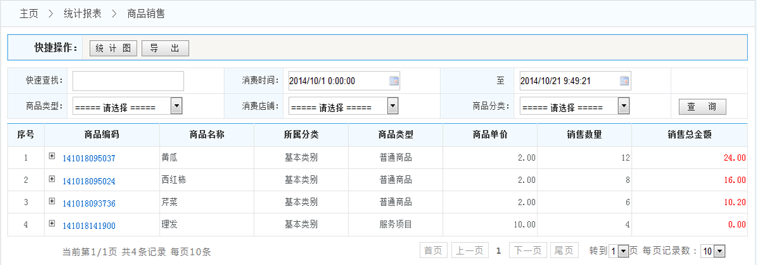 商品銷售統(tǒng)計:查看所有商品銷售情況