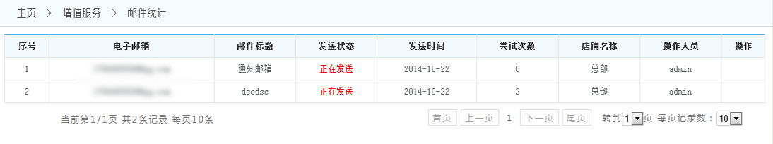 郵件統(tǒng)計: 列表:在郵件列表中的 發(fā)送狀態(tài)一欄會提示發(fā)送的狀態(tài),在發(fā)送次數一欄 會標記發(fā)送次數(系統(tǒng)會自動發(fā)送5次 直到發(fā)送成功為止,如果5此都不成功則此條郵件發(fā)送失敗)