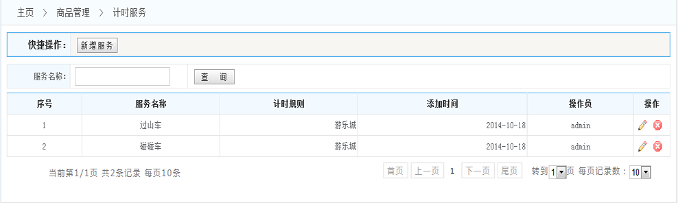 規(guī)則列表:展示系統(tǒng)內(nèi)設(shè)置的所有的服務(wù)項(xiàng)目 (操作一欄 可以對每條規(guī)則進(jìn)行修改和刪除 )