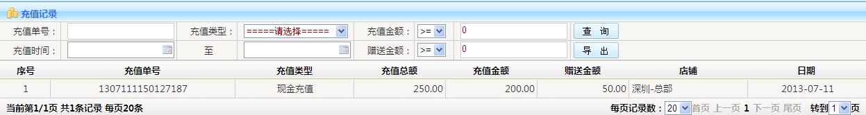 1.查詢:可以根據(jù)充值單號 時(shí)間段 充值類型等條件查詢