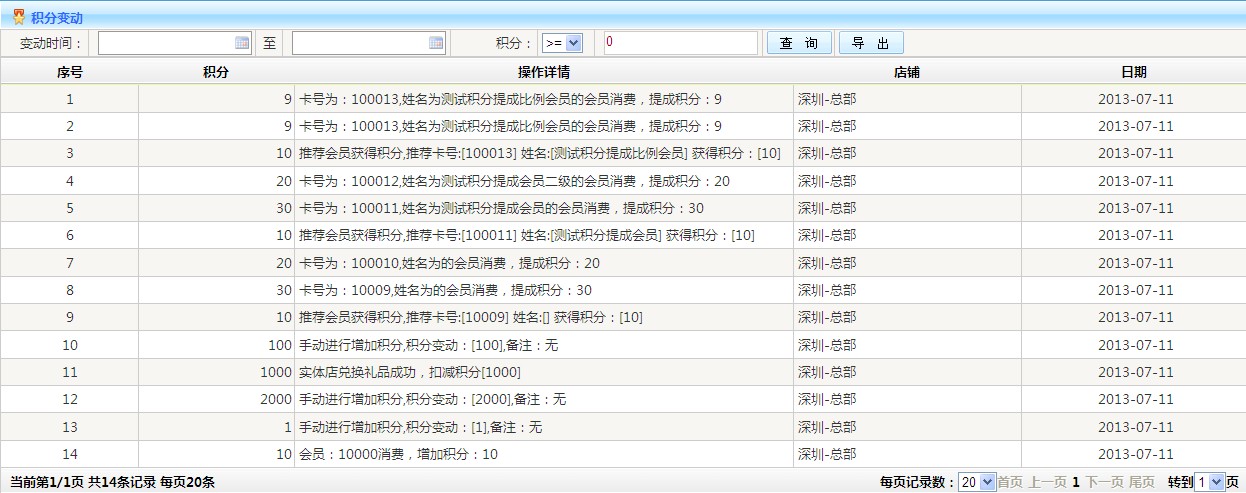 :查詢會員積分變動(dòng)情況并可以導(dǎo)出Excel文檔