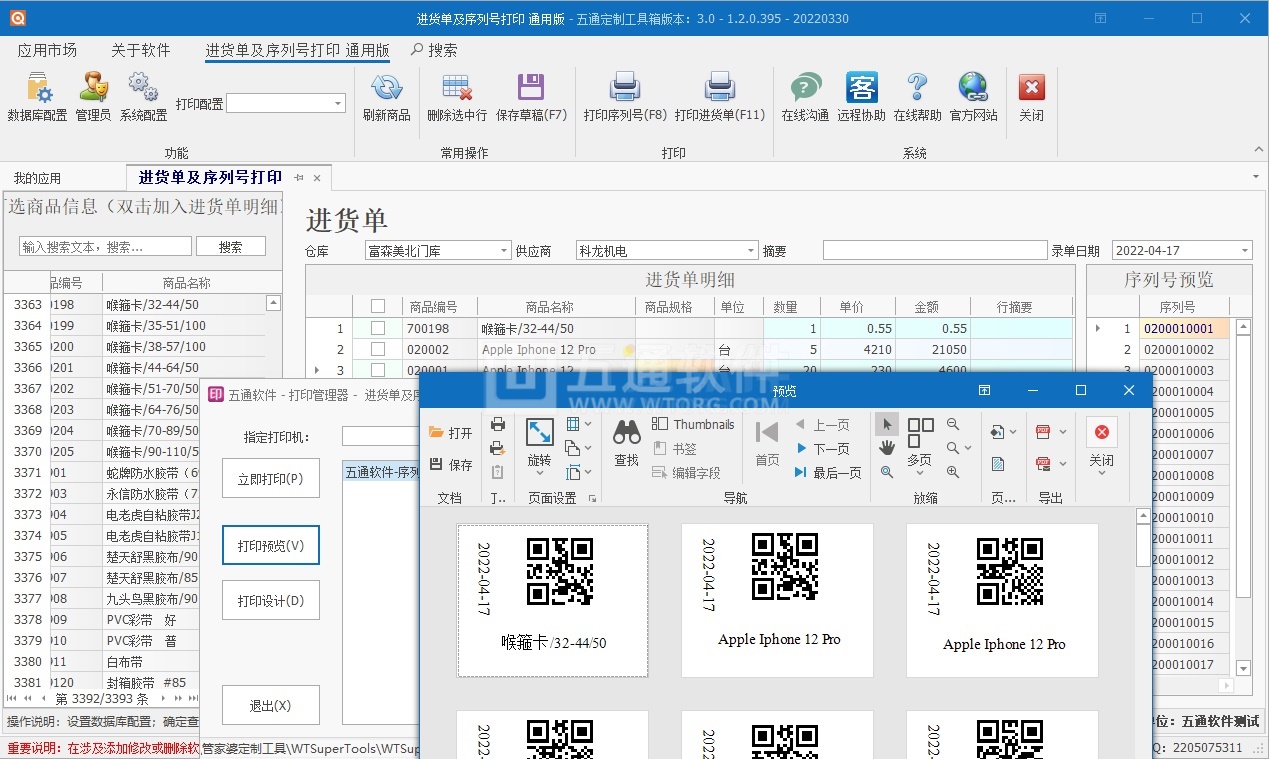 【五通定制管家婆輝煌應(yīng)用】序列號批量生成打印應(yīng)用,填寫數(shù)量自動生成對應(yīng)序列號,及序列號批量打印一、應(yīng)用對接軟件及版本: 管家婆輝煌+V13.22二、應(yīng)用功能描述: 1、開具采購單保存草稿,自動按錄入數(shù)量生成對應(yīng)序列號; 2、序列號自定義批量打印,可以實(shí)現(xiàn)…